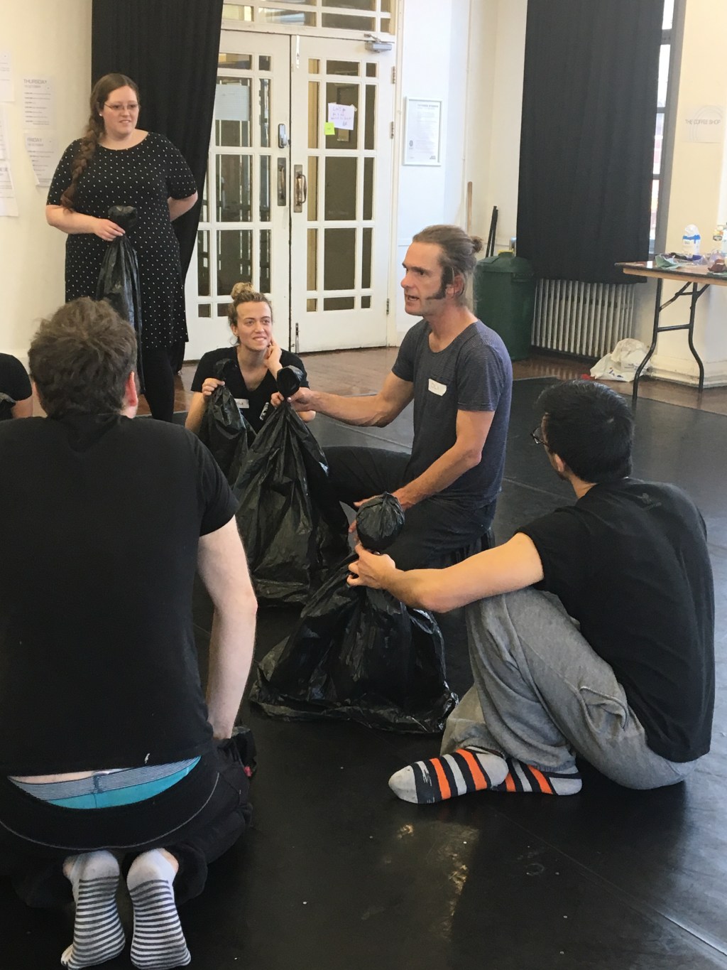 IMAGE: Guest Artist Oliver Smart demonstrates puppetry techniques using a plastic bin bag.